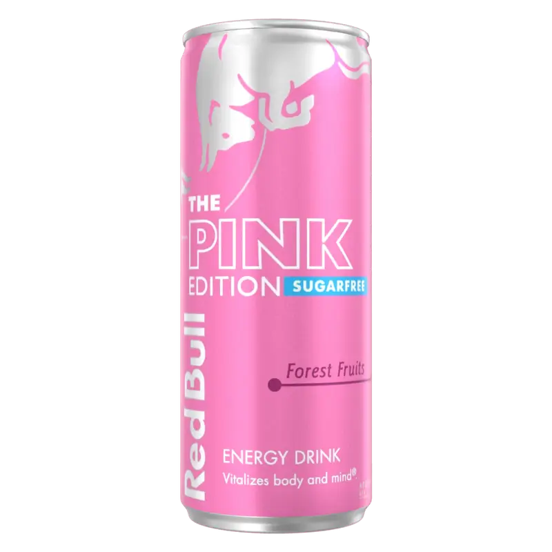 Try now Red Bull Pink Edition Sugar free with the taste of raspberry and other forest fruits complemented by exciting herbal notes of verbena.